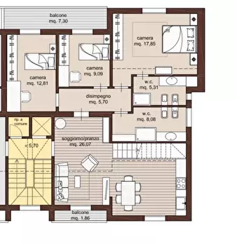 FUCECCHIO, NUOVA COSTRUZIONE: TRE VANI CON INGRESSO SINGOLO - Rif. 1/0957 - Al piano primo ed ultimo, appartamento con ingresso indipendente da vialetto privato e così composto: grande zona giorno con angolo cottura e balcone, disimpegno per la z...