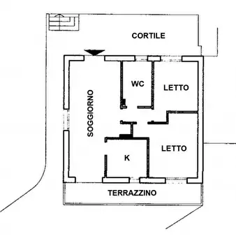 Vicinissimo al paese, primo ed ultimo piano di piccolo condominio, luminoso appartamento composto da ingresso, cucina, soggiorno con caminetto, con possibilità di termo-arredo tre camere da letto di cui due matrimoniali ed una singola, bagno fines...