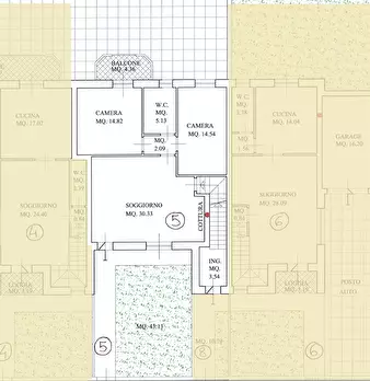 Appartamento di nuova costruzione disposto al piano terra di 104 mq totali, con ingresso indipendente. L'abitazione di circa 70 mq comprende soggiorno con angolo cottura, disimpegno, due camere matrimoniali di cui una con balcone. Al piano seminte...