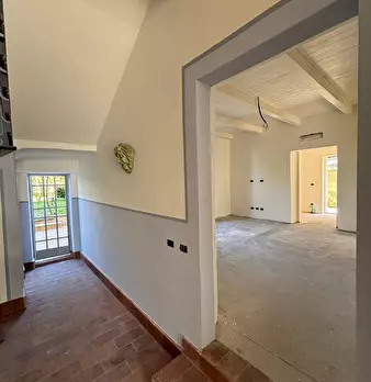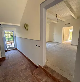 Greve in Chianti, località Chiocchio, a 15 minuti da Impruneta e Grassina, in campagna, ma vicino alla strada principale e ai servizi, VENDESI porzione di villa bifamiliare disposta su due livelli. E' composta da ingresso dal giardino sull'ampio s...