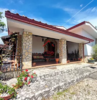 casa indipendente 5000 mq di terreno circostante 2 piani ad uso abittativo di cui uno grezzo al piano t garage e locale despotio terrazzo cucina soggiorno due camere un bagno 1 balcone che si accede dalla cucina a pochi passi dal centro
