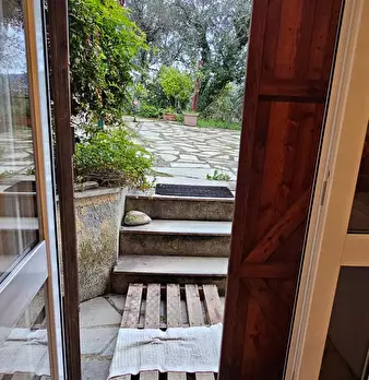 Porzione di villetta bifamiliare proprietà terra-tetto, ingresso indipendente e ottima privacy in quanto aree esterne godibili non confinanti. L' immobile si compone al piano terra di ampia corte lastricata e ingresso diretto in soggiorno ove è pr...