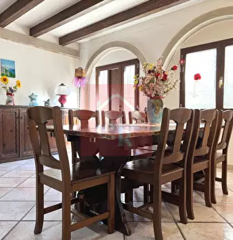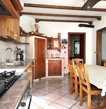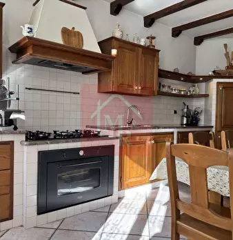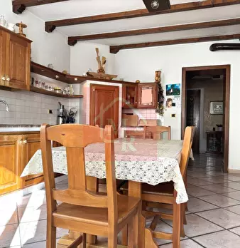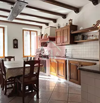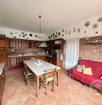 In pieno centro paese è situata questa CASA DI TESTA, di 210mq, sviluppata su due livelli composta da: P.T.: ampia sala da pranzo con caminetto ventilato, soggiorno, cucina abitabile con accesso ad un'ampia stanza, riscaldata dallo spolert, ora ad...