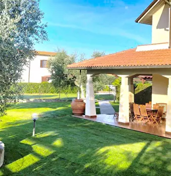 GROSSETO - RISPESCIA VILLA BIFAMILIARE ottime condizioni pari al nuovo, ingresso da grande giardino ben curato con piante ornamentali di olivo, zona barbecue, ampio portico di ingresso con accesso al soggiorno, cucina abitabile a vista, bagno e te...