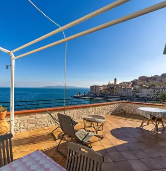 Porto Santo Stefano Direttamente sul mare, affacciato sulla Piazza più bella del paese, questo attico vanta una grandissima terrazza con stratosferica vista mare. L'appartamento vanta ambienti spaziosi e luminosi, tipici delle costruzioni signor...