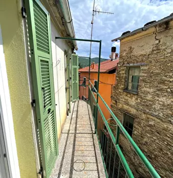 Appartamento con terreno in vendita a Nava, comune di Pornassio (Im). La casa è situata al secondo piano di un piccolo edificio di soli due piani. La sua superficie totale è di circa 60 metri quadrati. L'immobile è suddiviso in: Ingresso su co...