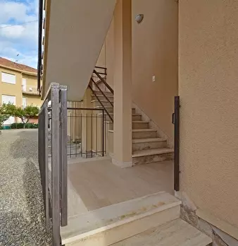 Appartamento primo piano di un condominio di due piani; composto da due camere, cucina aperta su soggiorno, bagno, termoautonomo, posto auto e giardino di pertinenza; cantina; terreno attiguo. A pochi passi dal mare, sito in zona collinare in ambi...