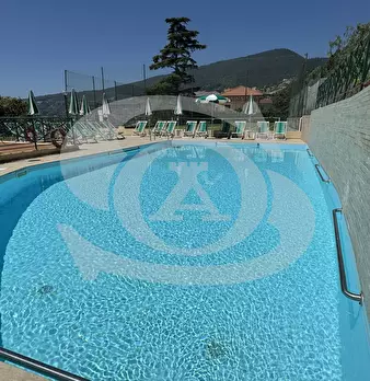 Appartamento monolocale con giardino e piscina in vendita ad Ospedaletti. L'appartamento si trova in un complesso residenziale dotato di Piscina, Campo da tennis, Parco giochi per bambini. Si accede all'appartamento con ingresso su piccolo disimpe...