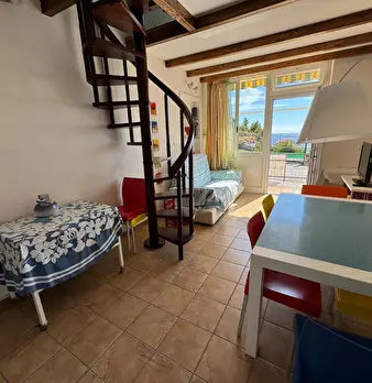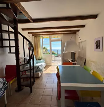 Sanremo all' ingresso della Frazione di Poggio a 3 km dal mare. Appartamento soppalcato, composto da ingresso in soggiorno con angolo cottura, bagno, cambusa/ripostiglio, al piano superiore soppalcato raggiungibile con scala a chiocciola troviamo...