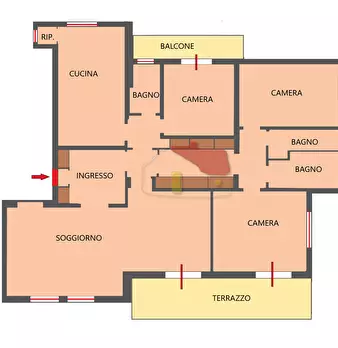 PENTALOCALE ZONA IMPERATRICE - VISTA MAREIn contesto elegante e residenziale, vendiamo un alloggio di considerevoli dimensioni (170 mq), con una piacevole vista sul mare. L'immobile è situato al secondo e penultimo piano di un condominio signoril...