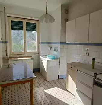 Sanremo, bilocale con cucina separata abitabile e ampio terrazzo, esposto a sud-ovest, soleggiatissimo e silenzioso per affaccio non su strada, vista aperta, mq.58, completamente da ristrutturare, composto da ingresso-corridoio, armadio a muro cap...