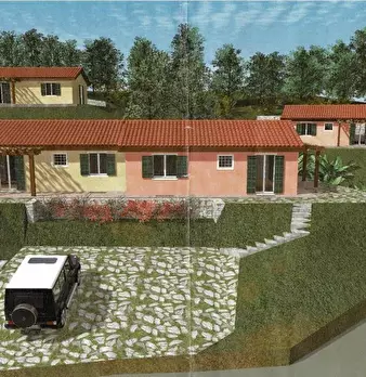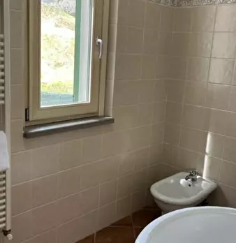 Ameglia Villetta bifamiliare in vendita In posizione dominante con vista panoramica ,porzione di bifamiliare con giardino composta da: piano terra garage di 46 mq. al piano primo giardino soggiorno con terrazza ampia ,angolo cottura, terrazzo, bag...
