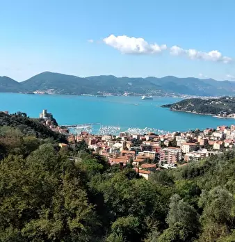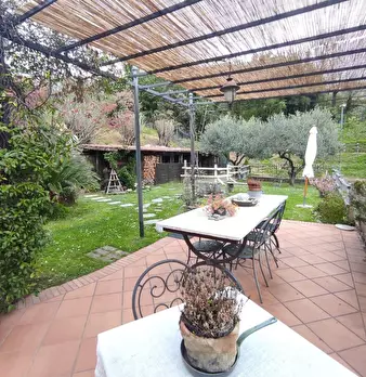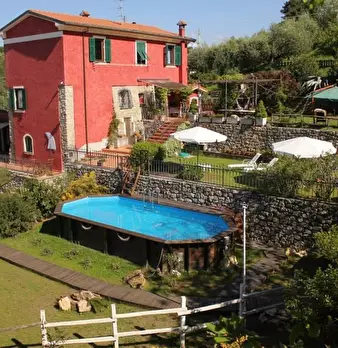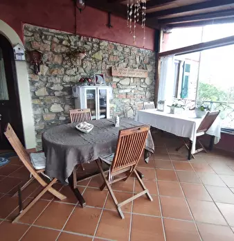 Sulle colline che sovrastano il Golfo di La Spezia, bellissimo casolare in pietra con vista mare completamente ristrutturato di 300 mq e 3800 mq di giardino piantumato con olivi, piante mediterranee e limoni . Piscina e parcheggio di proprietà . N...