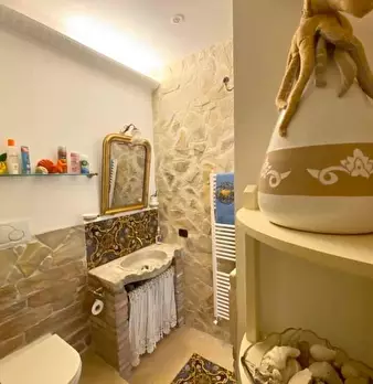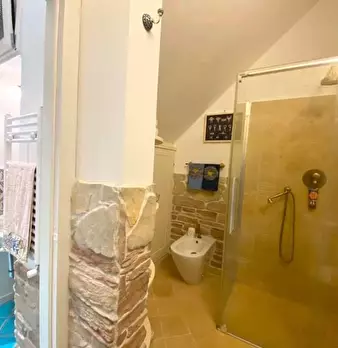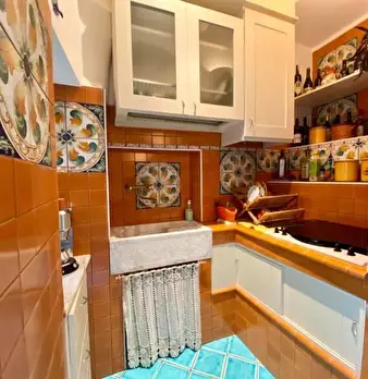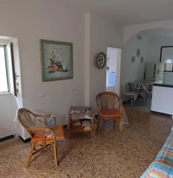 Grazioso appartamento su due livelli e terrazza vista mare posto nel caratteristico borgo storico a pochi passi dal centro del paese composto da soggiorno, cucina, due camere da letto, bagno e ripostiglio ideale come casa vacanza e affittacamere.