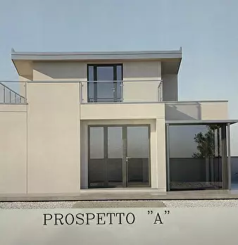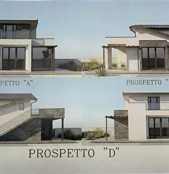 Progetto di costruzione per l'edificazione di un villino unifamiliare bilivelli distribuito al PT in: 1 ampio spazio divisibile in 2 ambienti, come ad esempio 1 camera e 1 cucina abitabile, 1 bagno ed 1 serra bioclimatica chiudibile con vetri scor...