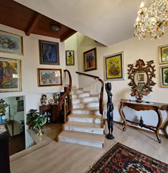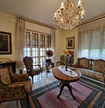 Villa indipendente a due passi dal centro con ampio giardino. L’immobile ha una superficie di mq 287 ed è composta al piano rialzato da un porticato in entrata, un ampio ingresso, sala pranzo, cucinotto e ampio soggiorno con camino, tre scalini c...