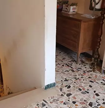 In zona residenziale, porzione di fabbricato centrale libera su due lati fronte e retro composta al piano terra da appartamento trilocale da ristrutturare oltre ad ampio locale magazzino di circa 90 mq. Al piano superiore ampio appartamento compo...