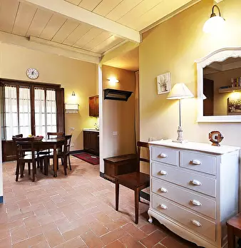Appartamento spazioso in stile toscano di 79 mq, completo di tutti i comfort. Si trova all’interno del Residence “Podere San Giuseppe”, un casolare di campagna nella Costa degli Etruschi, tra le colline e il mare. L’ingresso si affaccia sul...