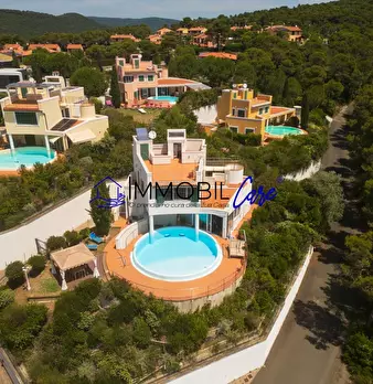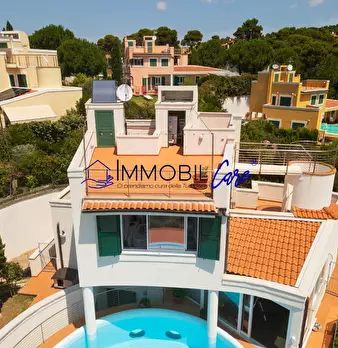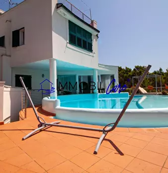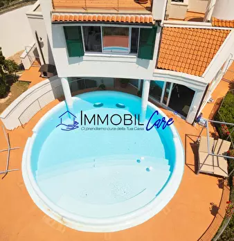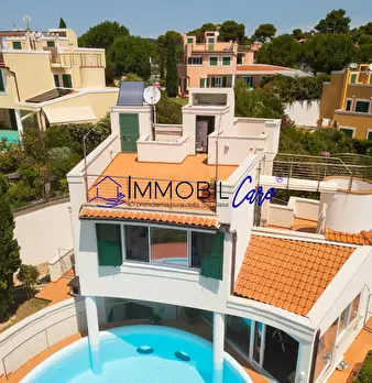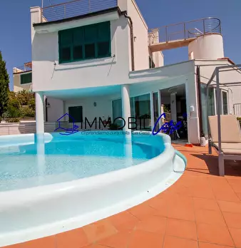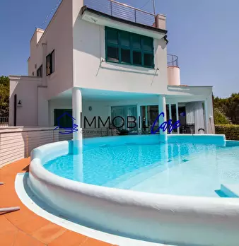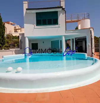 CHIOMA – VIA DELLE ROSE Nelle vicinanze del moletto di Quercianella, immersa nella tranquillità del verde, proponiamo una splendida villa indipendente in stile moderno con giardino e piscina privata con vista mare. Questa proprietà unica si svilup...