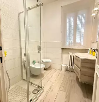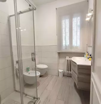 In palazzina condominiale dotata di ascensore, ampio e luminoso appartamento in ottime condizioni, disposto interamente al primo piano e composto da ingresso living nella zona cucina-soggiorno, tre camere di cui due matrimoniali, doppi servizi, tr...