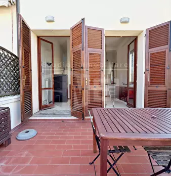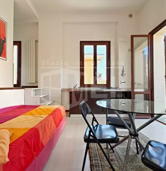 SCALI DELLE CANTINE: caratteristico bilocale, situato al terzo piano senza ascensore in palazzo storico, con bellissima vista sulla Fortezza Nuova. Ingresso in soggiorno con bel camino perfettamente funzionante, cucinotto separato in muratura con ...