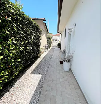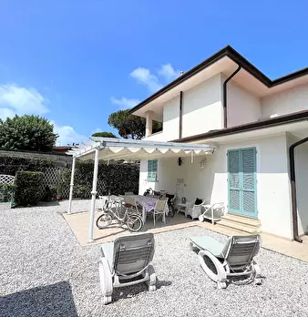 Marina di Pietrasanta, 900 mt dal mare, zona tranquilla, VENDESI UNIFAMILIARE di circa 150 mq, su due livelli, libera su quattro lati con giardino carrabile di ca 370 mq.. L’immobile è suddiviso in due unità abitative con ingressi singoli, ma com...