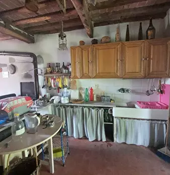 Tipica casa di paese Toscana, in pietra, di ampie dimensioni e ottima come casa vacanze o da abitare tutto l'anno. Corredata da giardino panoramico e cantina. Si compone: al piano terra da ingresso e vano scale, ampia cucina-tinello con terrazza, ...