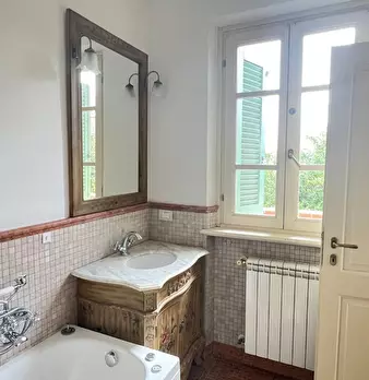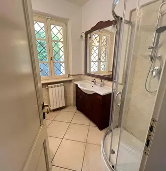 Seravezza (LU) sul Confine con la Prestigiosa Forte dei Marmi, Vendesi Porzione di Trifamigliare di Recente Costruzione. Ingresso dal Giardino sul Salone, Cucina Abitabile con Accesso a Veranda e Bagno con Doccia e Finestra al Piano Terra. Piano S...