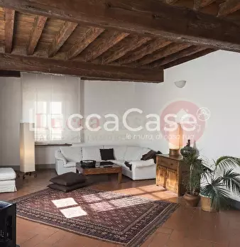 N054J CENTRO STORICO - LUCCA. Appartamento posto al terzo e ultimo piano, luminosissimo, molto bello ristrutturato con elementi molto antichi e di pregio, rispettando l'originalità della sua antichità. Arricchito di soffitto a cassettoni nel salo...