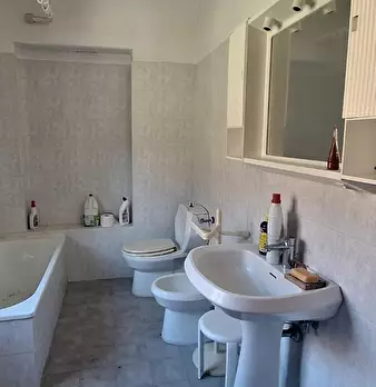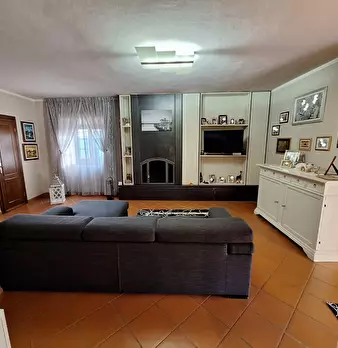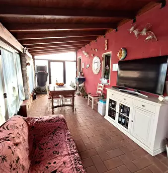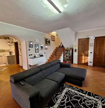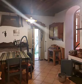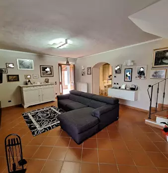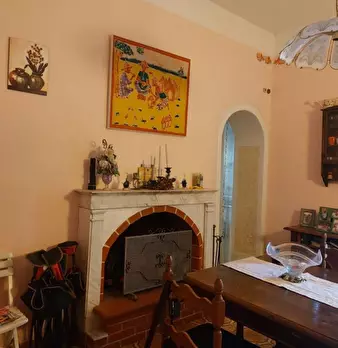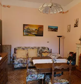 Casa di paese, facente parte di un più ampio fabbricato, in posizione assolata e corredato di grande giardino sul fronte, terrazza panoramica e terreno. Si compone al piano terra da soggiorno con caminetto, cucina-tinello con caminetto, due came...