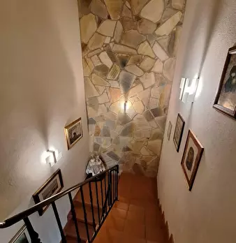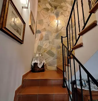 Bella casa di paese, libera su 3 lati, in pietra, ristrutturata e terrazza panoramica. Si compone di due piani: al piano terra è presente il soggiorno-cucina con accesso alla terrazza, bagno e camera matrimoniale; al piano seminterrato da tre cant...