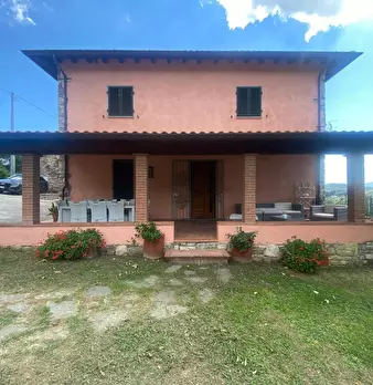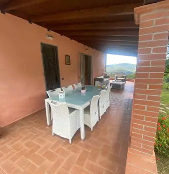 Luminosa casa di paese, singola con giardino, in buona posizione, con panorama. L'abitazione si compone: al piano terra da piacevole porticato, ingresso-soggiorno, cucina, tinello con caminetto e accesso al giardino, 2 camere matrimoniali e bagno...