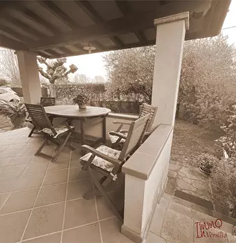 Marina di Pietrasanta: deliziosa villetta indipendente posta al piano terra di più ampio fabbricato con giardino su tre lati, patio in entrata, ripostiglio in seminterrato, terrazze vivibili est/ovest e due posti auto. Attraverso la veranda si ac...