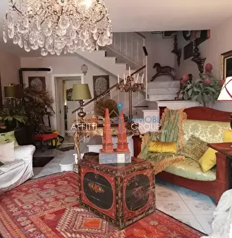 In zona comoda e a pochi passi dai negozi, in edificio liberty, porzione di bifamiliare di circa 160 mq sviluppata su tre livelli: ingresso in soggiorno doppio, cucina, bagno e lavanderia al piano terreno da cui, con una scala in marmo, si raggiun...