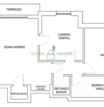 ImmobilGroup Rif. 3123Massa, a pochi passi dal centro, Appartamento posto al Secondo Piano di un condominio con Ascensore, composto da: Ampia zona Giorno,Cucina Abitabile, Camera Matrimoniale, camera doppia, Bagno finestrato con vasca, Bagno di Se...