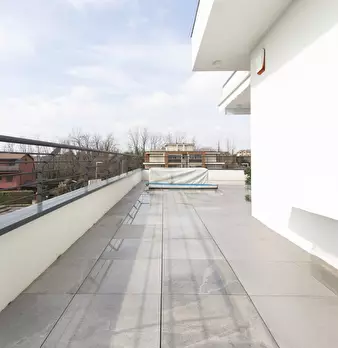 Bernareggio - In prestigiosa minipalazzina disponiamo di elegante appartamento ubicato al piano primo con terrazzo privato di 60 mq. L'immobile in oggetto è composto da 4 locali, doppi servizi ed è suddiviso in un ampio salone con vetrata panorami...