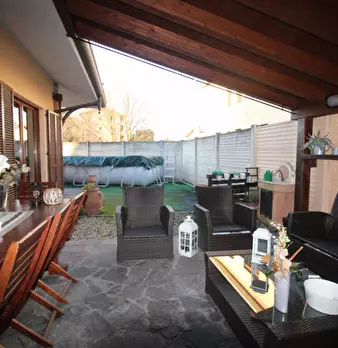 In Macherio, nella zona denominata belvedere, tranquilla e immersa nel verde, proponiamo un MERAVIGLIOSO QUADRILOCALE IN VILLA CON TAVERNA GIARDINO E BOX DOPPIO, con una superficie di 336 mq commerciali oltre a giardino di 335 mq ed area di passag...