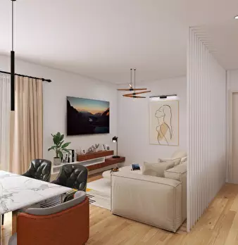 Soluzione composta da ingresso sul soggiorno, cucina abitabile chiusa ma possibile aprirla sul soggiorno per dare luce e spazio all'ambiente, 2 balconi, camera matrimoniale molto grande, camera 3/4, bagno, garage grande con posto cantina in fondo ...