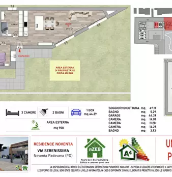 ***RESIDENCE NOVENTA ULTIMO APPARTAMENTO DISPONIBILE AL PIANO TERRA*** Ampia zona giorno, 3 camere da letto, 2 bagni finestrati, garage doppio e giardino di circa 400 mq!!! Residence Noventa è un elegante e moderno complesso residenziale di nu...