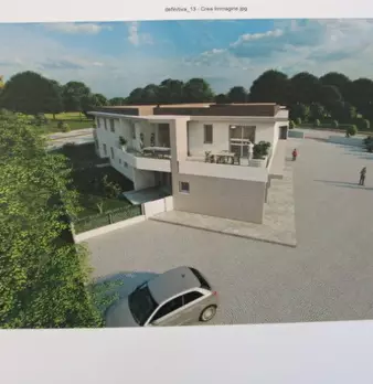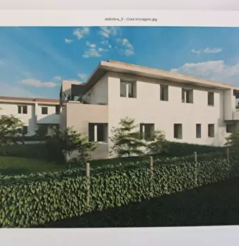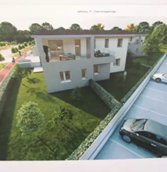 Situato in centro paese, nuovo appartamento al piano primo in contesto di 6 unità e composto di: soggiorno, cucina, tre camere, due bagni, ripostiglio, poggiolo, terrazzo di 52 mq. e garage. L'immobile dispone d'impianto di ventilazione meccanica ...