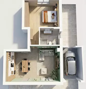 Nuova porzione di bifamiliare in orizzontale, sita al piano terra con ingresso indipendente. L’immobile si compone di ingresso, soggiorno con angolo cottura, un bagno finestrato e ampia camera matrimoniale. L’unità è dotata di un garage singolo ...