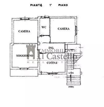 Appartamento indipendente di mq 90 al piano primo con acceso tramite scala esterna, in un fabbricato quadrifamiliare risalente a metà anni 70. La composizione è la seguente: Ingresso, cucina, sala con camino, disimpegno, due camere, due bagni di c...