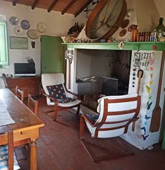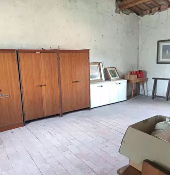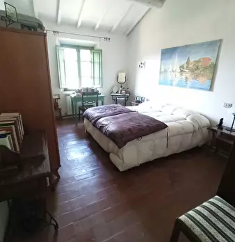 Grande porzione di fabbricato, in pietra, disposta su due livelli, di complessivi 350 mq circa e così composta: al piano terra troviamo i locali di deposito (ex stalla) per una superficie di 162 mq e la cantina, a servizio dell’abitazione al piano...