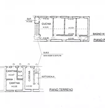 Porzione di fabbricato, realizzata in mattoni, disposta su due livelli, di complessivi 250 mq circa. Al piano terra troviamo due cantine, un ampio ripostiglio e tre fondi di circa mq 160. L’altezza di tutto il piano terra è tale da potervi ricavar...