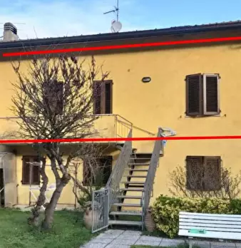 NUOVA PROPOSTA Trattasi di un'appartamento posto al primo piano in Via Gaggera a Gradara (PU), località Fanano. L'immobile è accessibile tramite una scala ubicata sullo scoperto di proprietà unitamente al box auto di 38mq. Il lotto è composto da...
