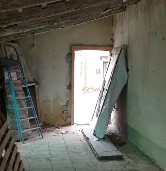 SECCHIANO centro, casa abbinata da entrambi i lati, completamente da ristrutturare, di 100 mq con 80mq di magazzino e 100 mq di giardino