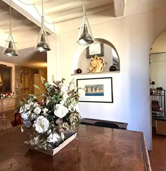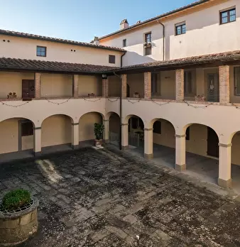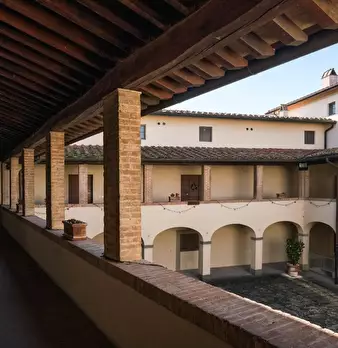 VILLA MONTECCHIO, un borgo antico nel cuore della campagna TOSCANA dalle origini storiche uniche – un tempo castello e successivamente ex monastero certosino del IX secolo – situata su una collina panoramica e circondata da 4 ettari di parco secol...