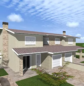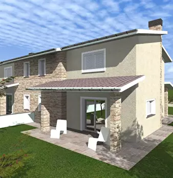 Santa Maria a Monte-zona collinare-prossima costruzione di villetta terratetto in fabbricato bifamiliare, composta al piano terra da ampia zona giorno open space, ripostiglio, due loggiati, garage e giardino privato sui tre lati di circa 500 m.q. ...