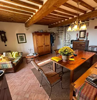 Nella splendida cornice di paesaggio collinare di Chianni, in posizione riservata ma vicino al paese, proprietà immobiliare composta da casale in stile rustico toscano di mq. 410 posto su due livelli con bellissima terrazza panoramica, annesso di ...