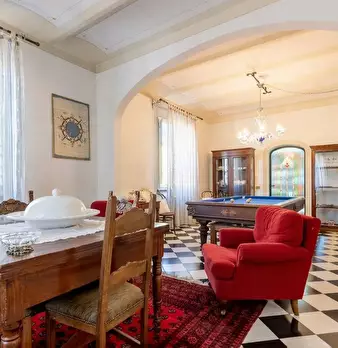 Proprietà costituta da due edifici d’epoca (inizio del secolo scorso) tra loro collegati da un piccolo loggiato: una villa che si sviluppa su tre piani (circa 450 mq. complessivi), un fabbricato ad un piano (150 mq. circa) destinato a locali di sg...